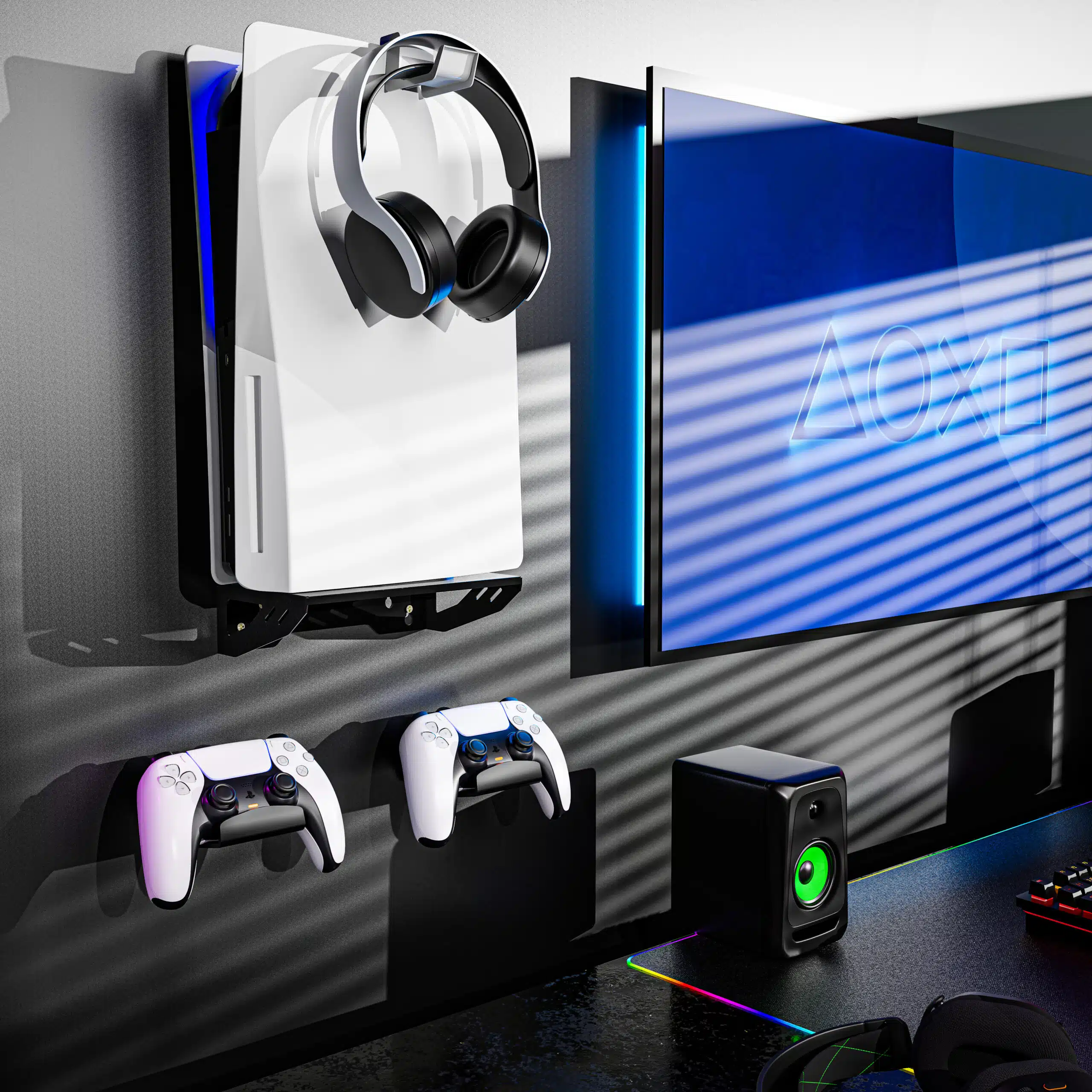 PS5 Wall Mount Stand & Controller Holders for PS5 & PS5 Slim